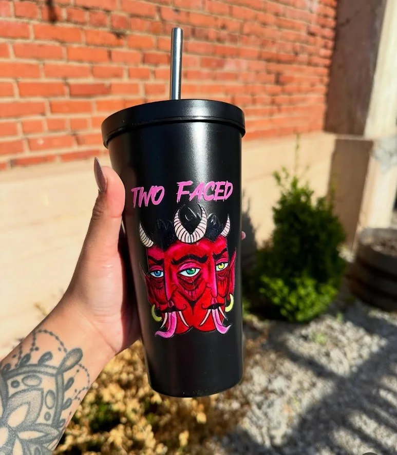 Meet the Two-Faced Devil. This design brings my art to life on wearable and functional pieces that stand out and make a statement.